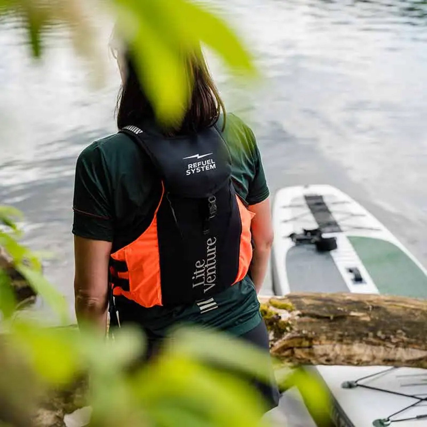 An optional hydration bladder can be inserted in the back compartment. There is a guide and holder for the drinking tube on the shoulder strap, so it is no longer necessary to attach a separate drinking bottle to the board or to stop to drink. You don't necessarily have to paddle in a competition to appreciate this feature, it can be very pleasant on a tour!